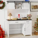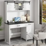 Rustic Farmhouse Desk–This refined executive desk with a hutch embodies the charm of a farmhouse design, making it a superb addition to any home office setup. Featuring a spacious desktop and ample storage options, it promotes an organized and cozy workspace. Its generous dimensions and versatility make it the ideal choice for those seeking a high-quality, stylish desk for their home office.