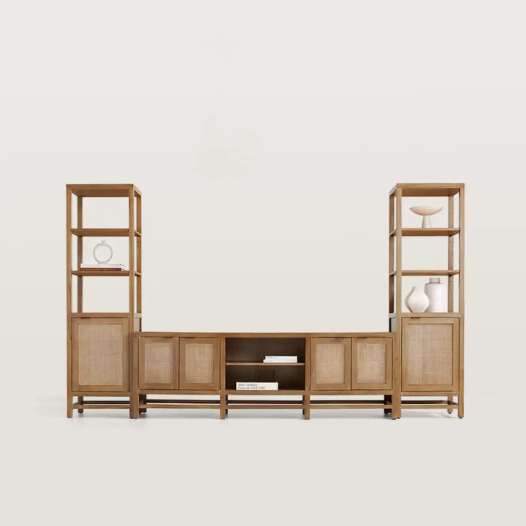 The desktop is spacious and suitable for placing televisions, speakers, decorations, or home photo frames. It has strong load-bearing capacity and is stable.