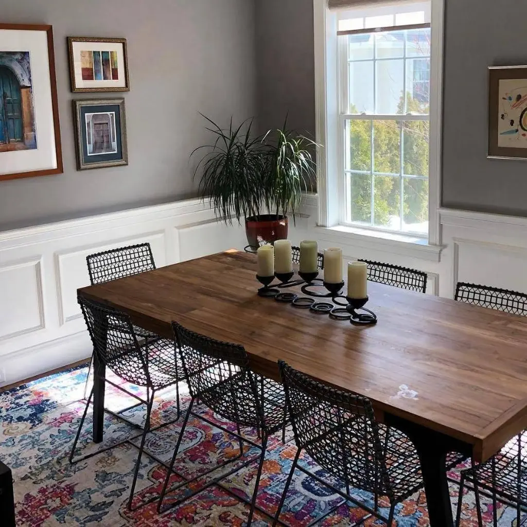 High density wood is selected and finely processed to ensure that the desktop is sturdy, durable, and not easily deformed. The surface of the wood is smooth and delicate, with natural and textured textures. Both light and dark colors can add a natural warmth to your dining space.