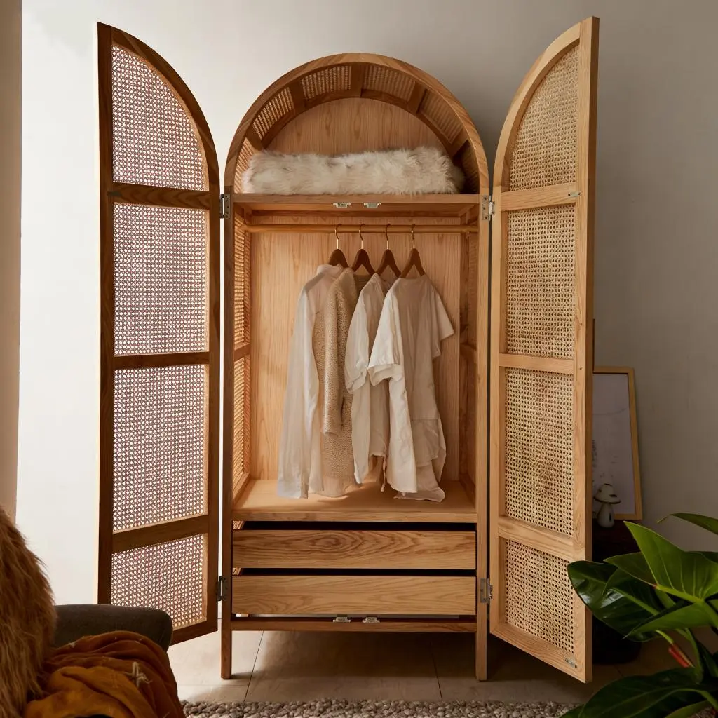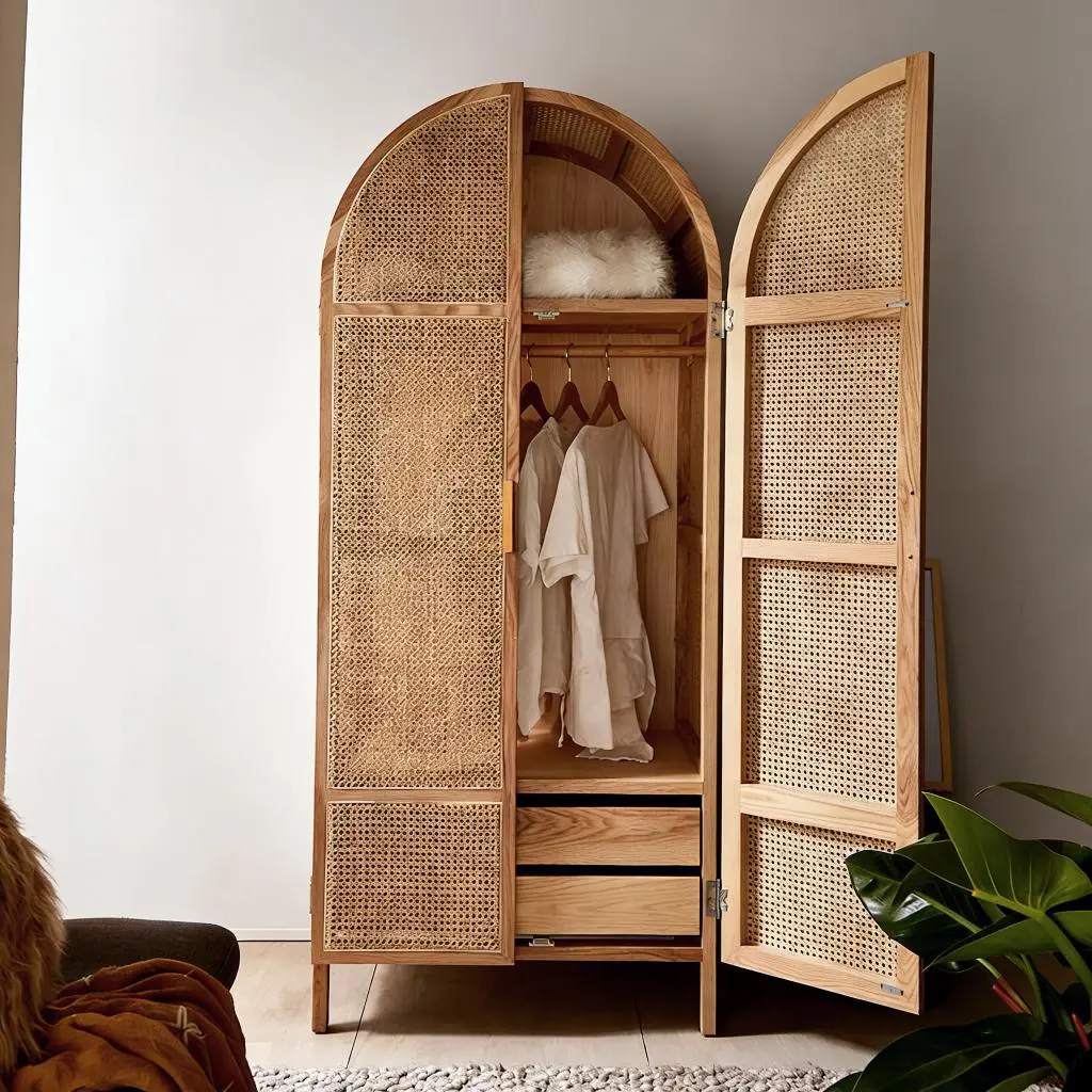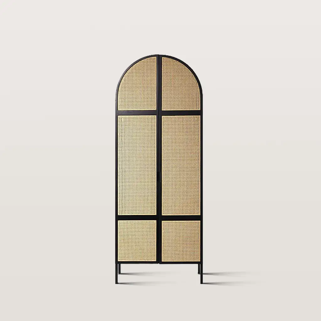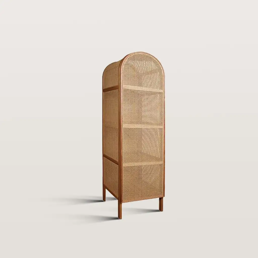 The facade of this wardrobe adopts traditional hand woven rattan craftsmanship, giving the wardrobe a unique natural style and exquisite handmade feel. The woven texture of rattan is both beautiful and breathable, adding a unique texture to the wardrobe.