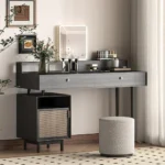 Equipped with an independent wicker door cabinet, it can store hair dryers, spare skincare supplies, or books, balancing breathability and aesthetics.