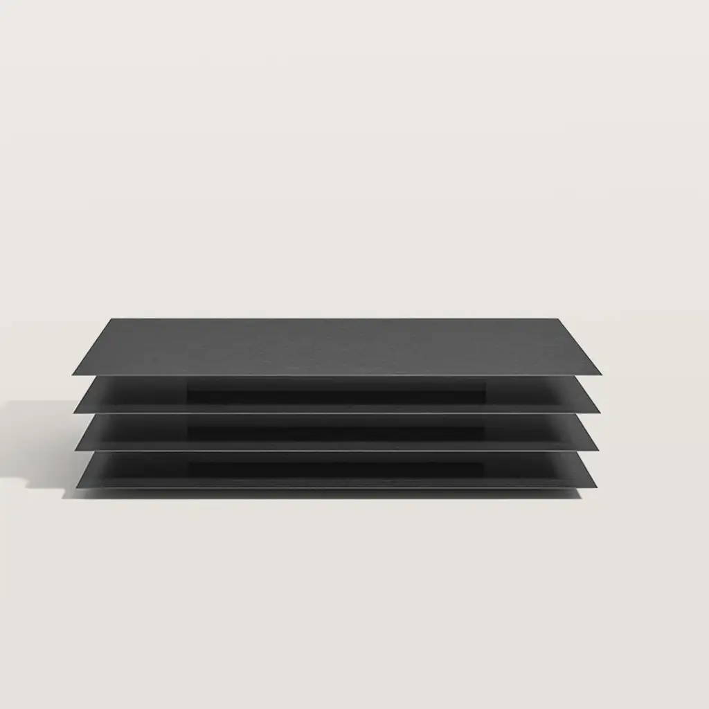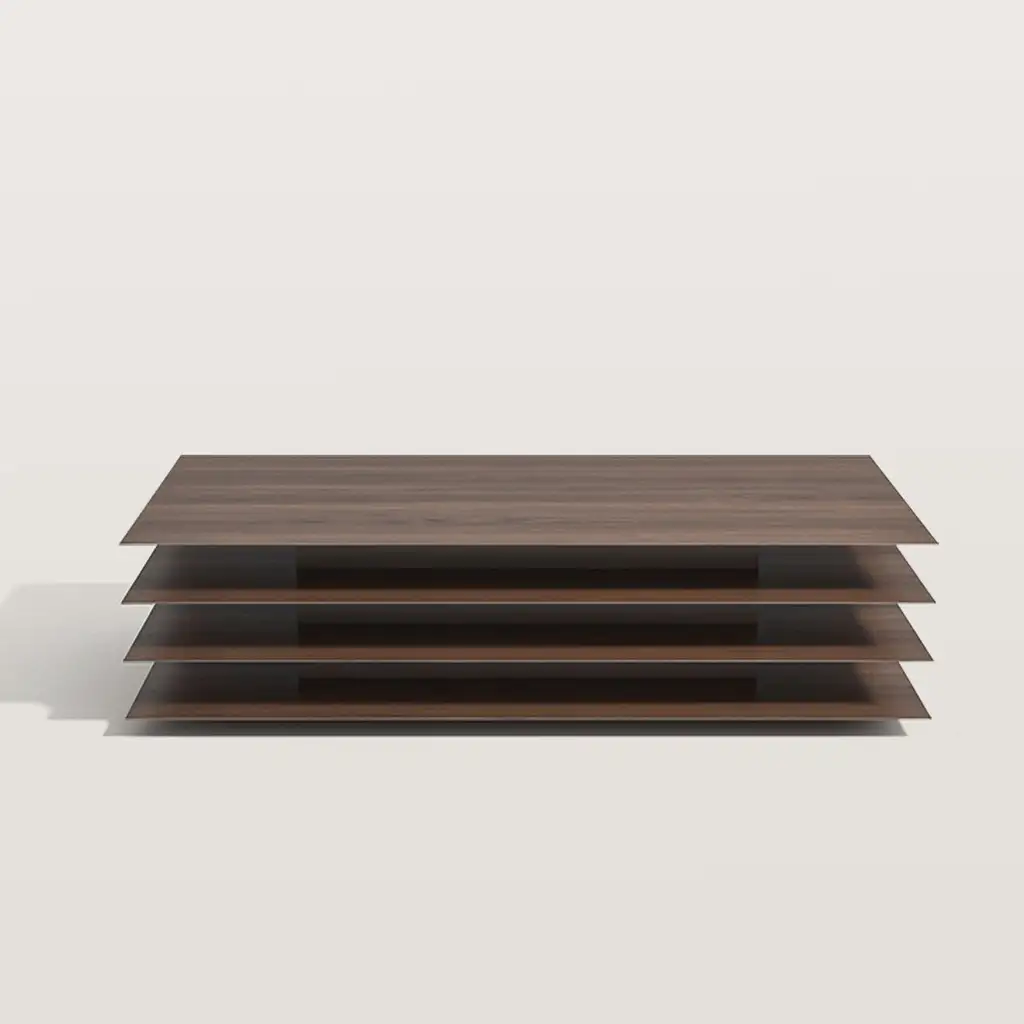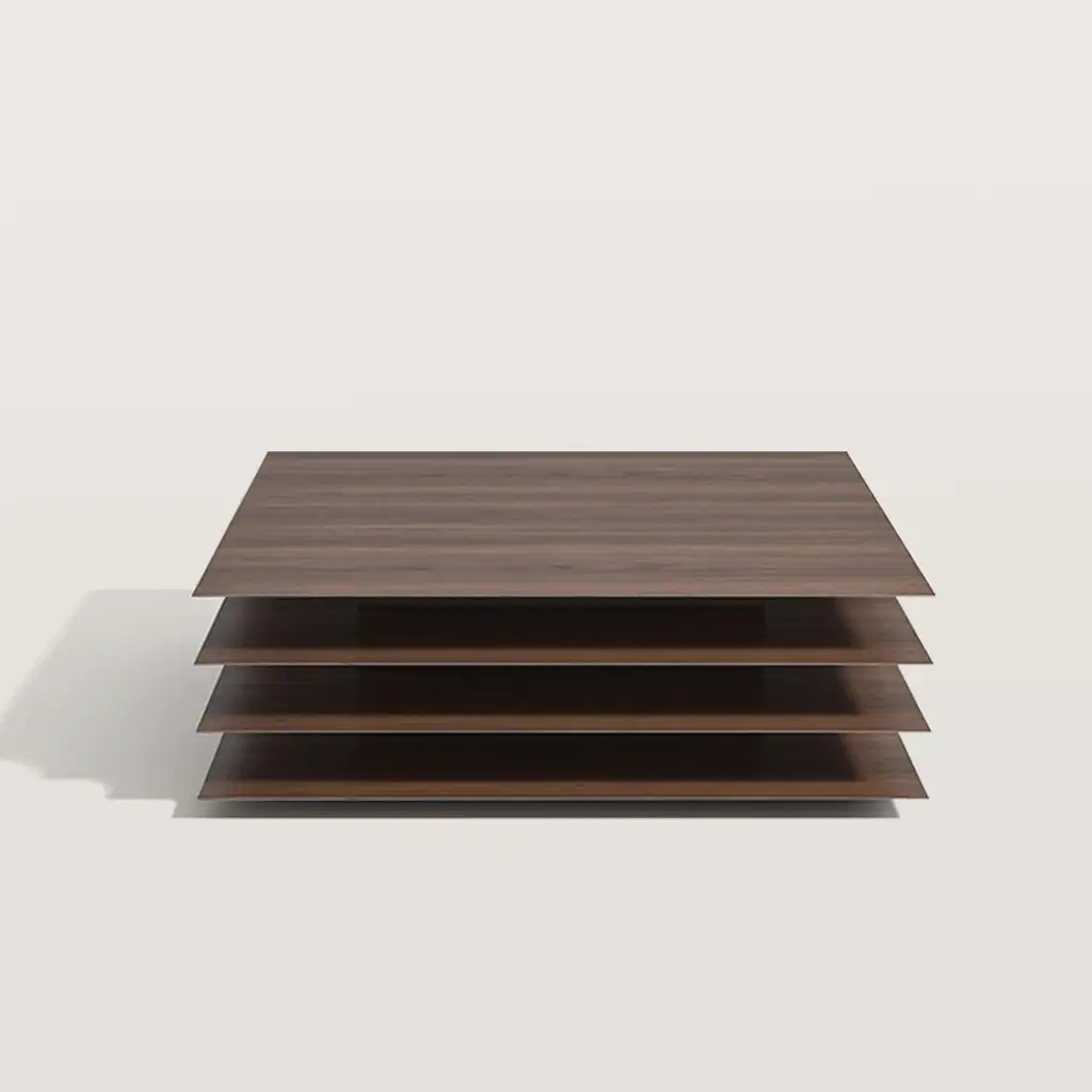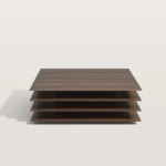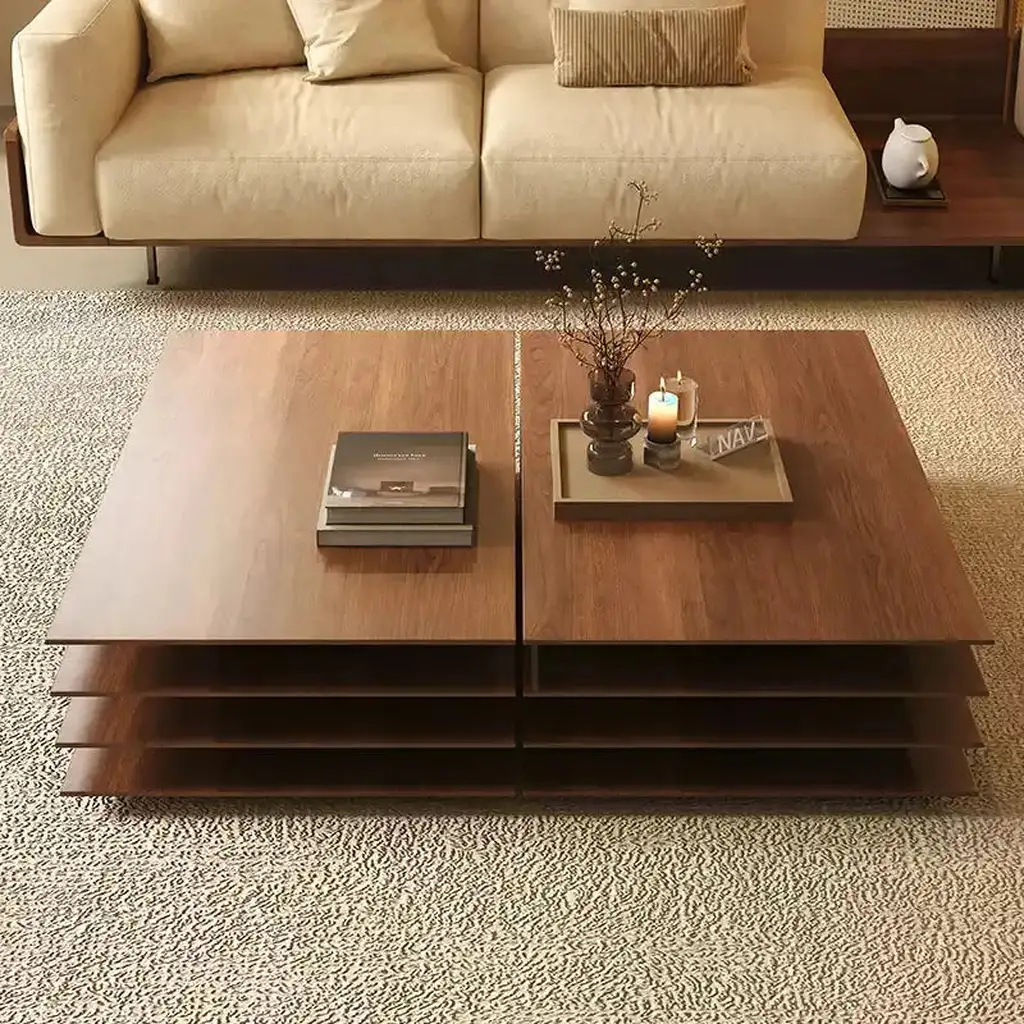 The four layered overlapping design of this coffee table gives it a visual sense of hierarchy and provides more storage space. The top provides sufficient space for placing tea sets, remote controls, magazines, and other items; The lower three levels can serve as additional open storage areas, greatly enhancing the functionality of the coffee table.
