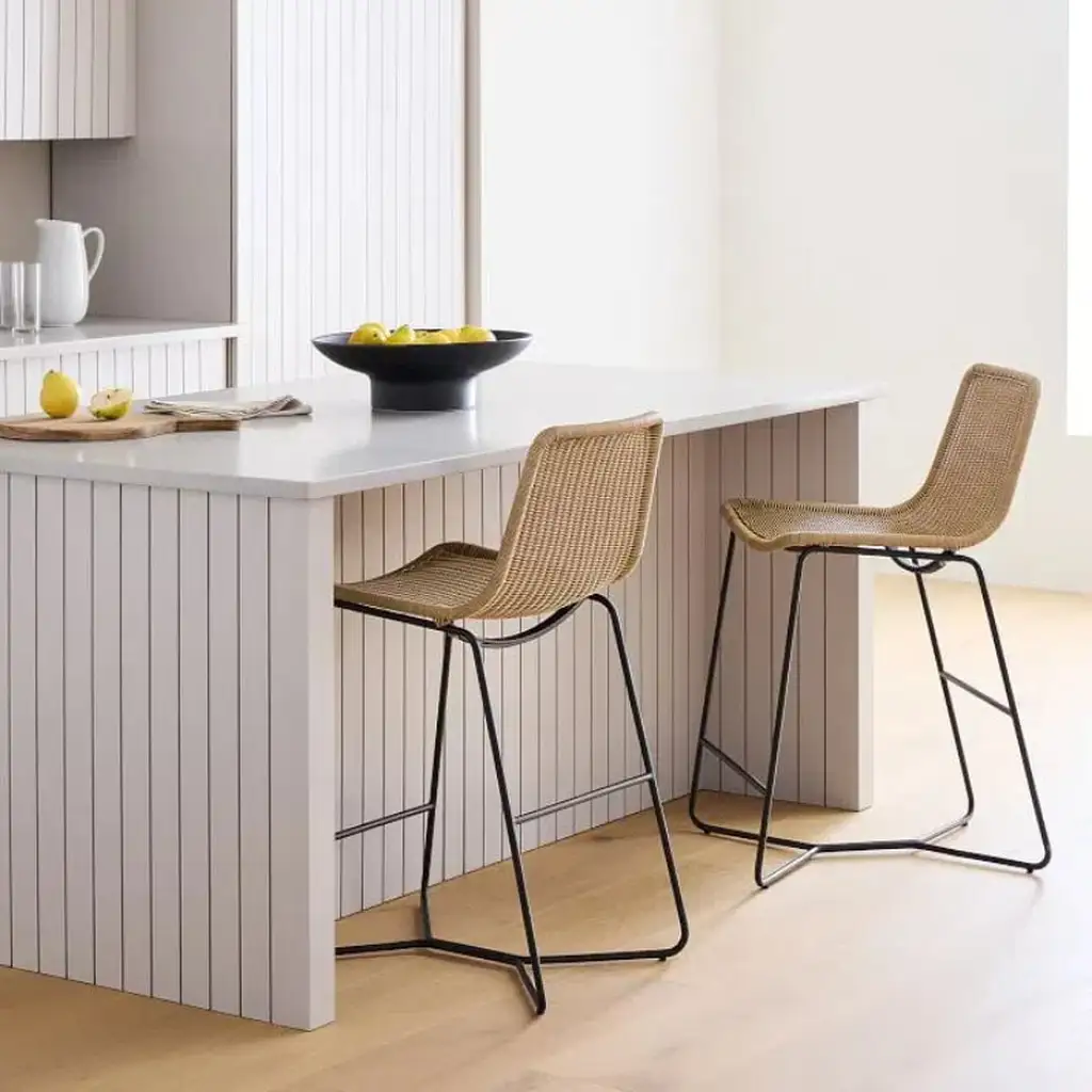 Experience superior comfort with our modern bar stool, designed with full PE woven rattan backrest for excellent breath ability. The handcrafted mesh fabric adds an elegant touch and showcases fine workmanship, while the woven rattan backrest provides comfort and breath ability. Each handwoven stool is a work of art, adding a touch of nature’s grace to your bar or kitchen area.??