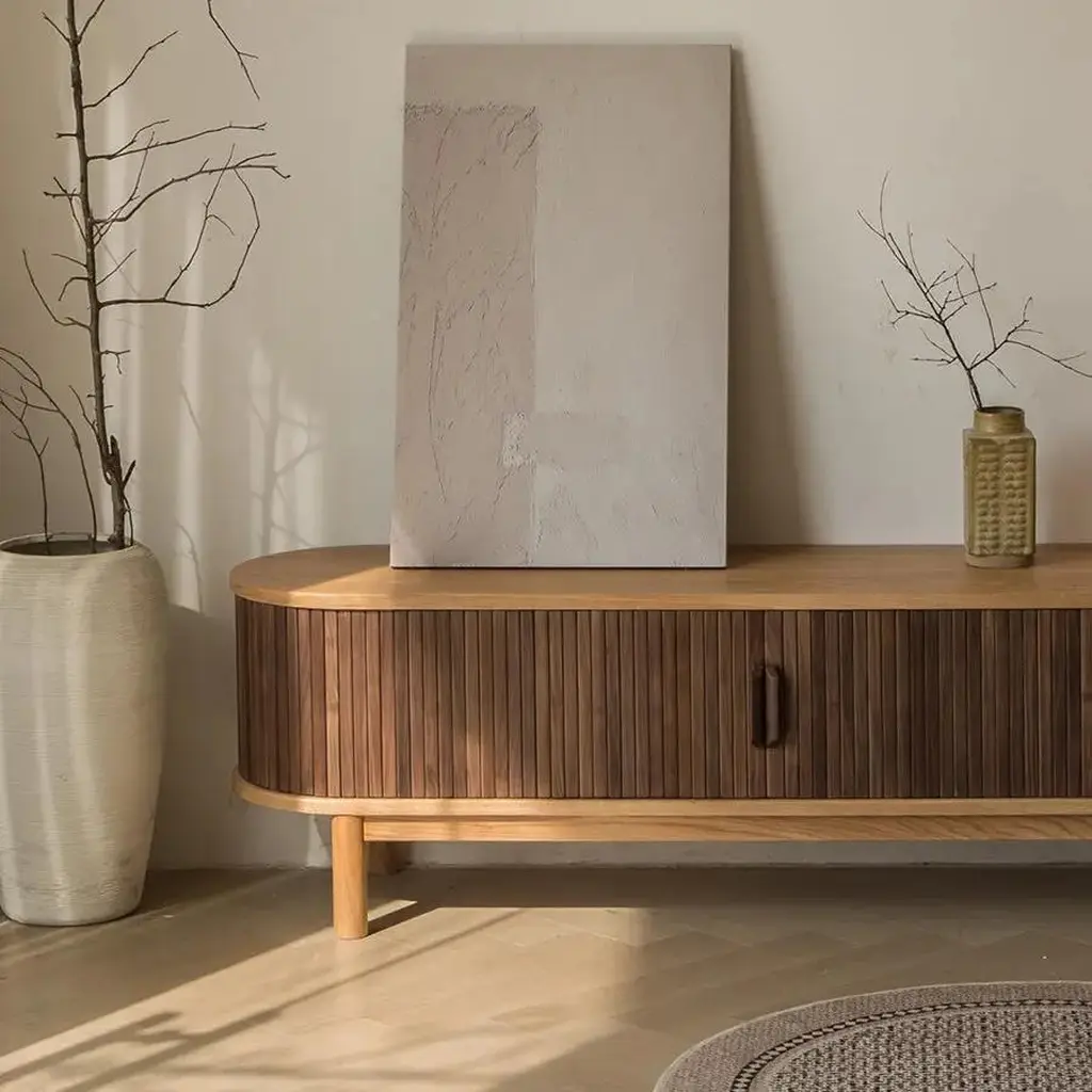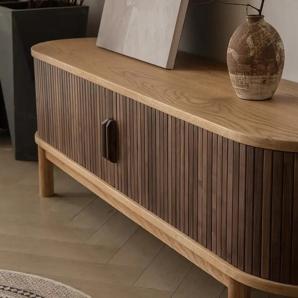 Elevate your living space with this Mid-Century Modern Console Cabinet. Crafted from high-quality wood, this stylish console features a sleek design with a sliding door, offering both functionality and aesthetic appeal. Its natural finish highlights the wood grain, adding warmth and elegance to any room. Perfect for storing books, decor items, and other essentials, this console cabinet is a versatile addition to your home decor.